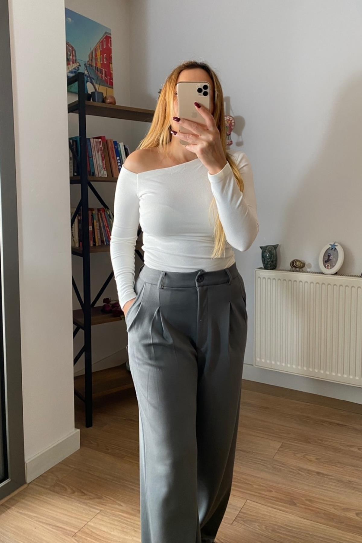 Modal Pamuk Kumaş Palazzo Pantolon Haki