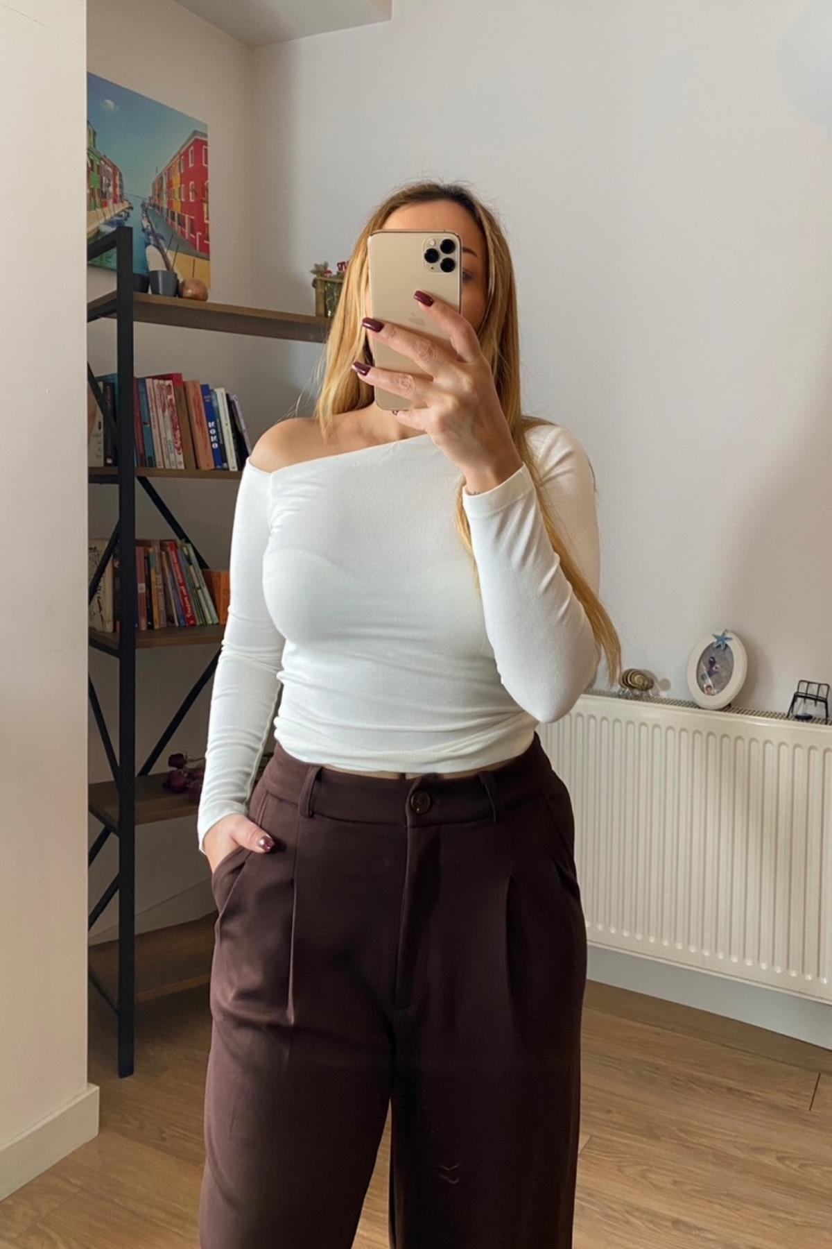 Modal Pamuk Kumaş Palazzo Pantolon Kahve