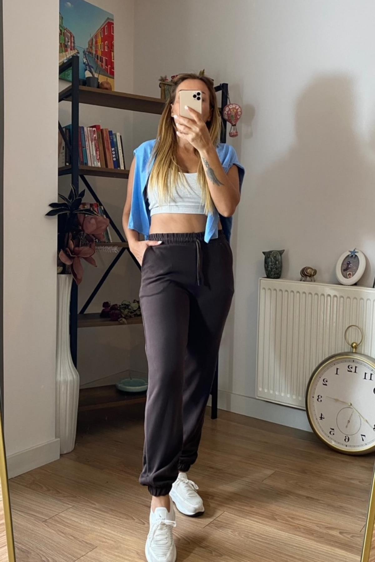 Yandan Cepli Beli Lastikli Eşofman Altı Kahverengi