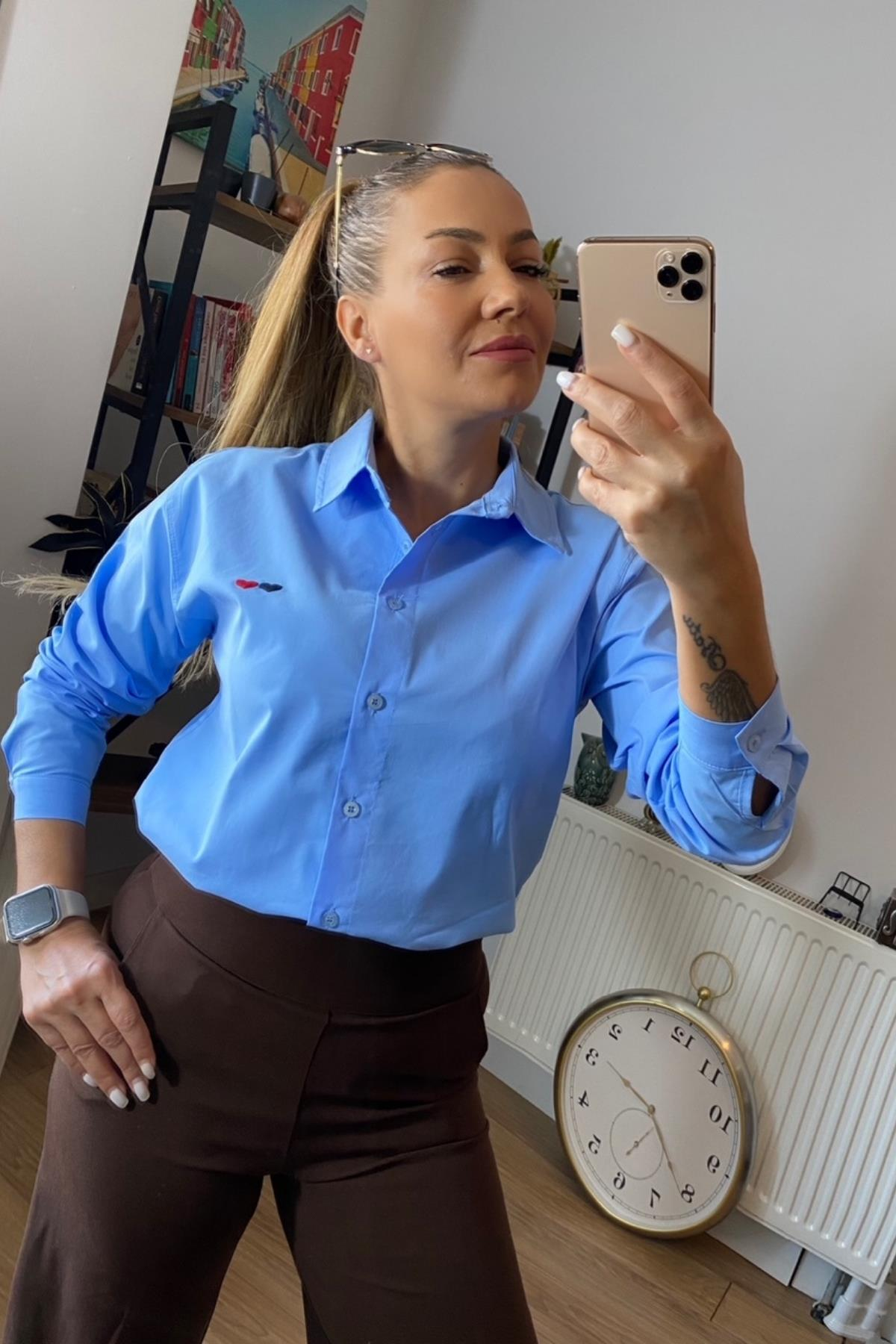 Pamuklu Kalp Detaylı Gömlek Mavi